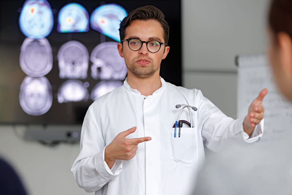 Warum Patienten mit Gehirntumoren bis heute nicht endgültig geheilt werden, liegt unter anderem an der wiederholten Neigung des Immunsystems zu einer Art Brudermord, wie es Mirco Friedrich erklärt. Er konnte aufzeigen, dass die Immunzellen des Körpers, die eigentlich den Tumor abstoßen sollten, vom Hirntumor reprogrammiert werden. Durch einen Eingriff in die Botenstoffe werden körpereigene Fresszellen und Killerzellen im Gehirn so verändert, dass sie nicht mehr ihrer eigentlichen Funktion nachkommen, nämlich in den Tumor vorzudringen und ihn abzuwehren. „Wir haben jetzt verstanden, wie der Hirntumor diese Zellen im Gehirn umprogrammiert für seine Zwecke.“