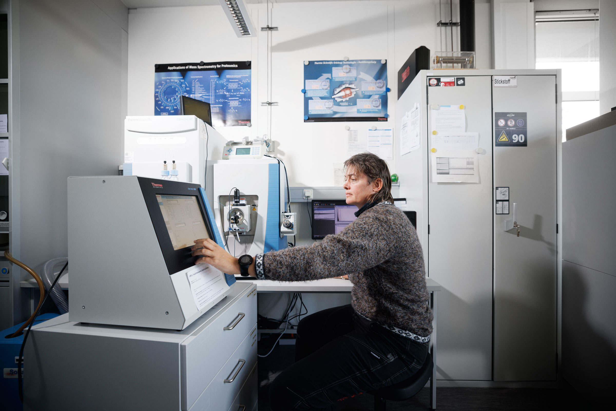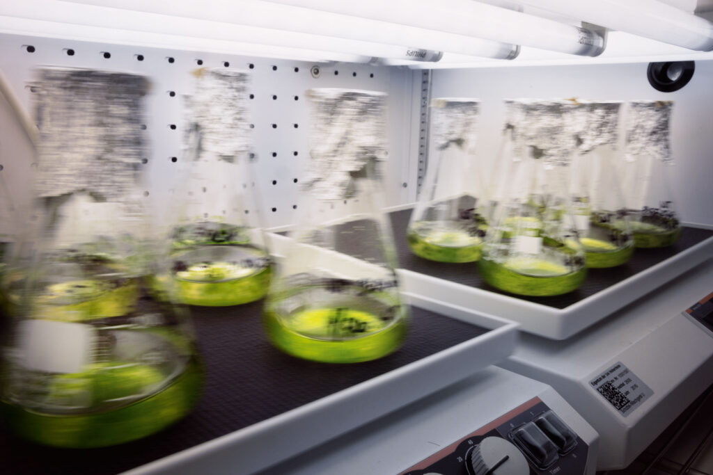 Das Massenspektrometer ist ein wichtiges Arbeitsmittel im Labor, in dem aber auch allerhand Pflanzen wachsen und kultiviert werden – wie das Moos Physcomitrium patens oder die Modellpflanze
