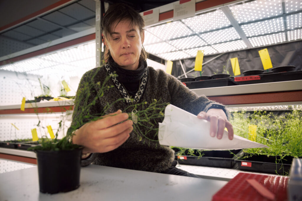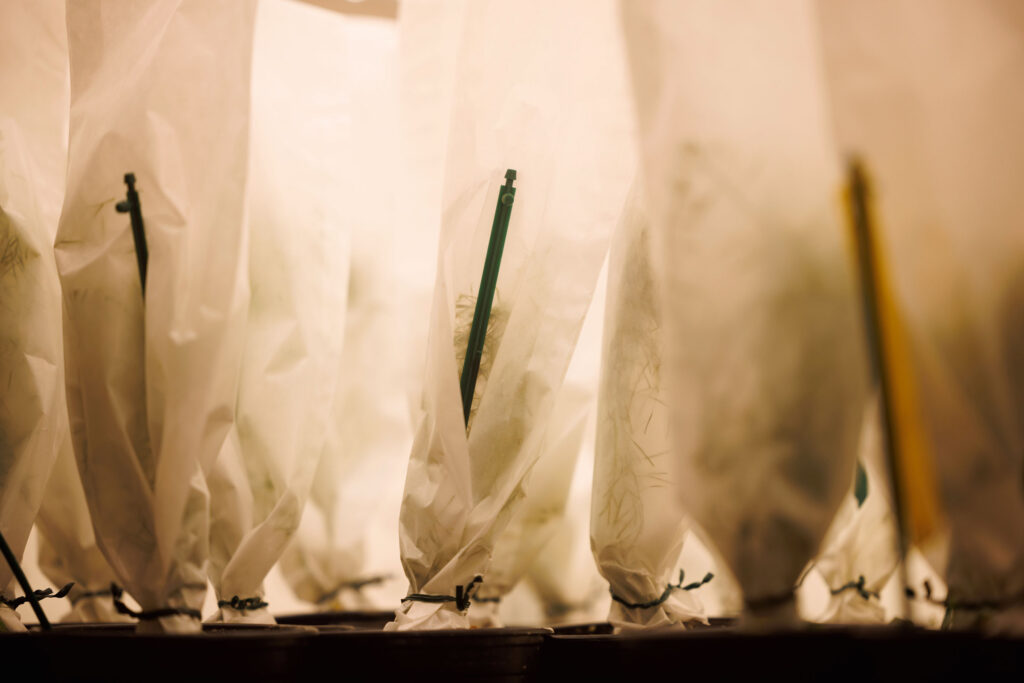In Hohenheim wird an der Modellpflanze Arabidopsis geforscht. Zur Samenproduktion werden die Blüten eingetütet.
