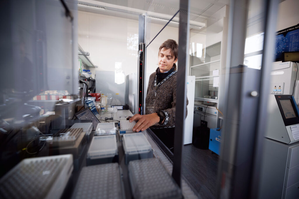 Im Labor sind viele Arbeitsschritte automatisiert, so kommen Proben in den Pipettierroboter.