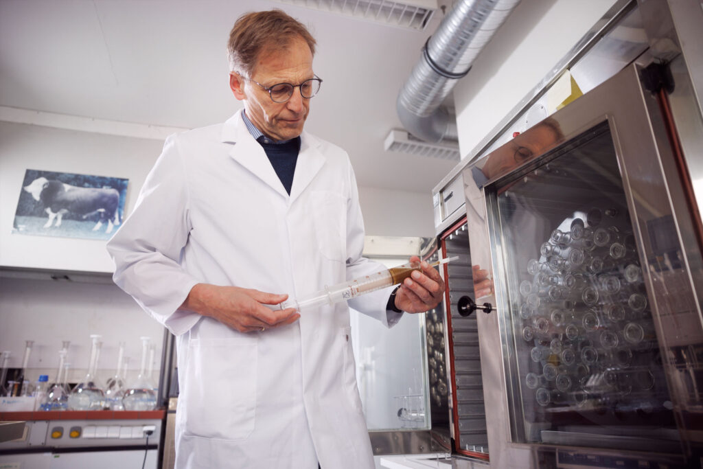 Im Labor simuliert Markus Rodehutscord den Vorgang, wie aus Gras Milch wird.